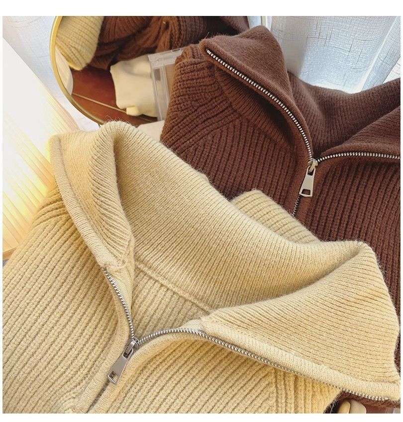 Women’s Loose Slim Lapel Sweater Top – Casual & Cozy - Beige / 2XL